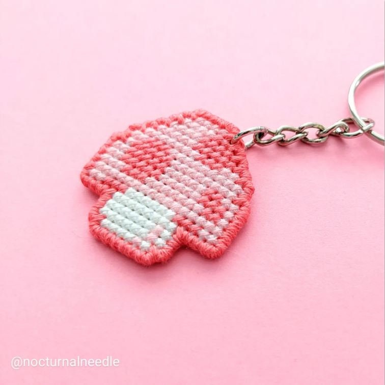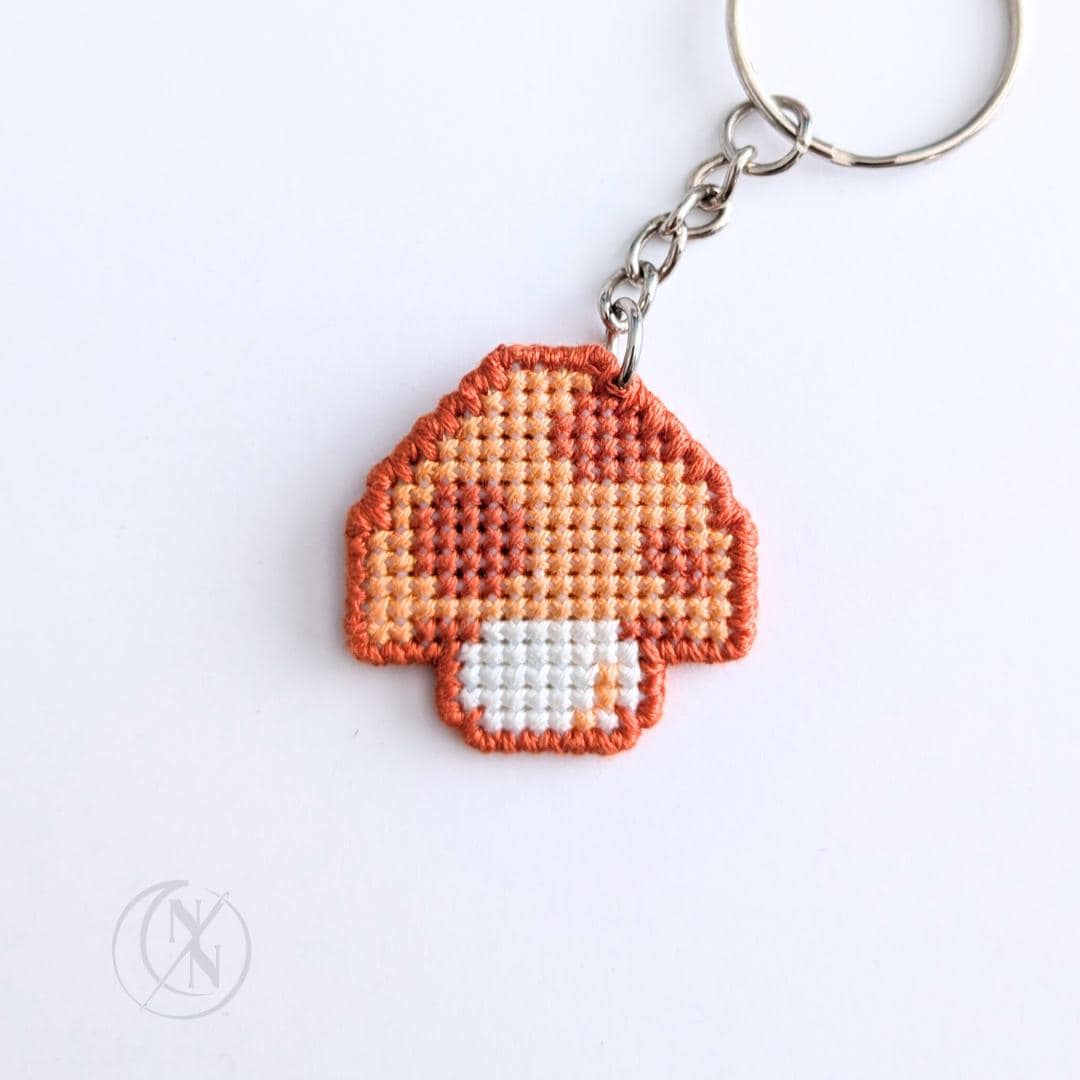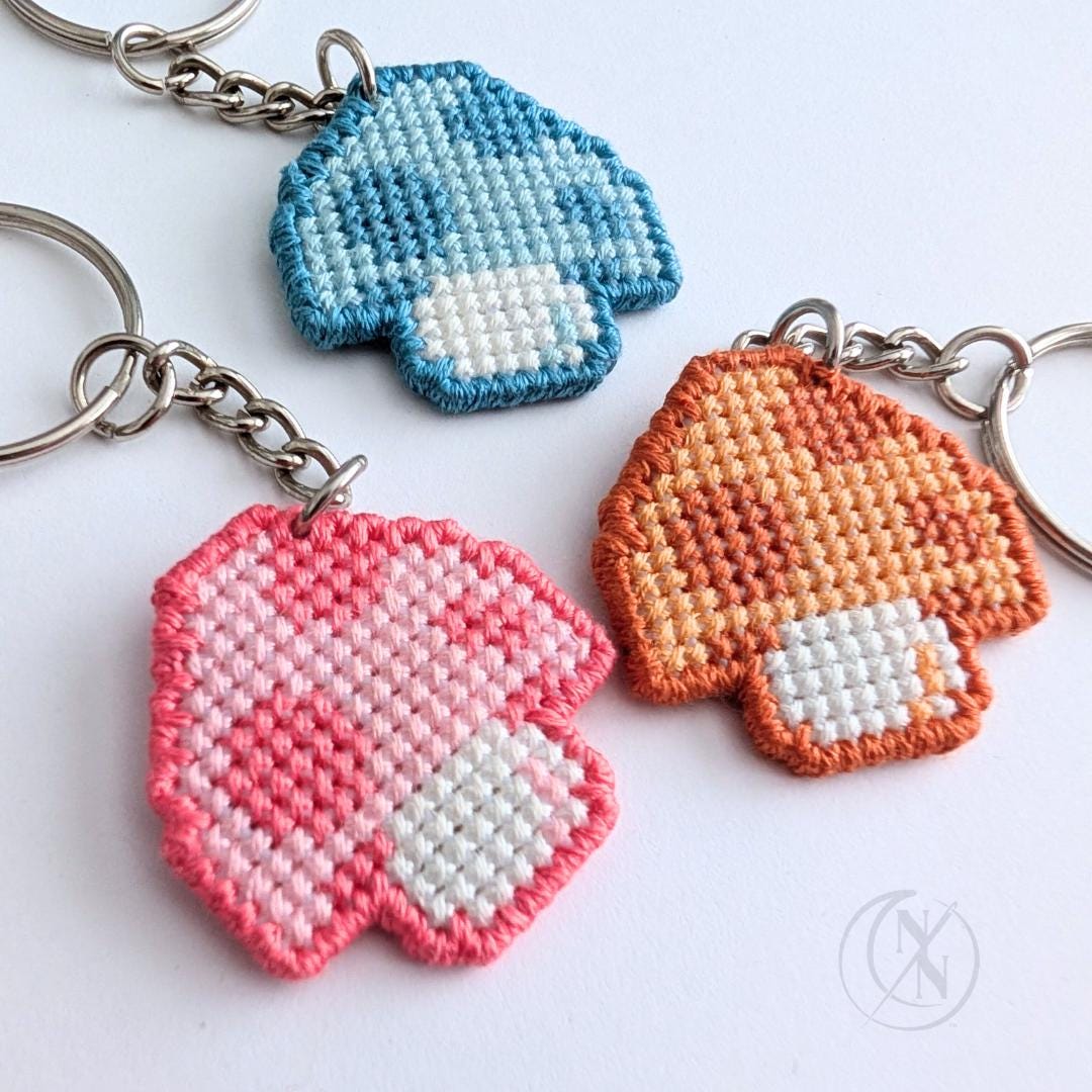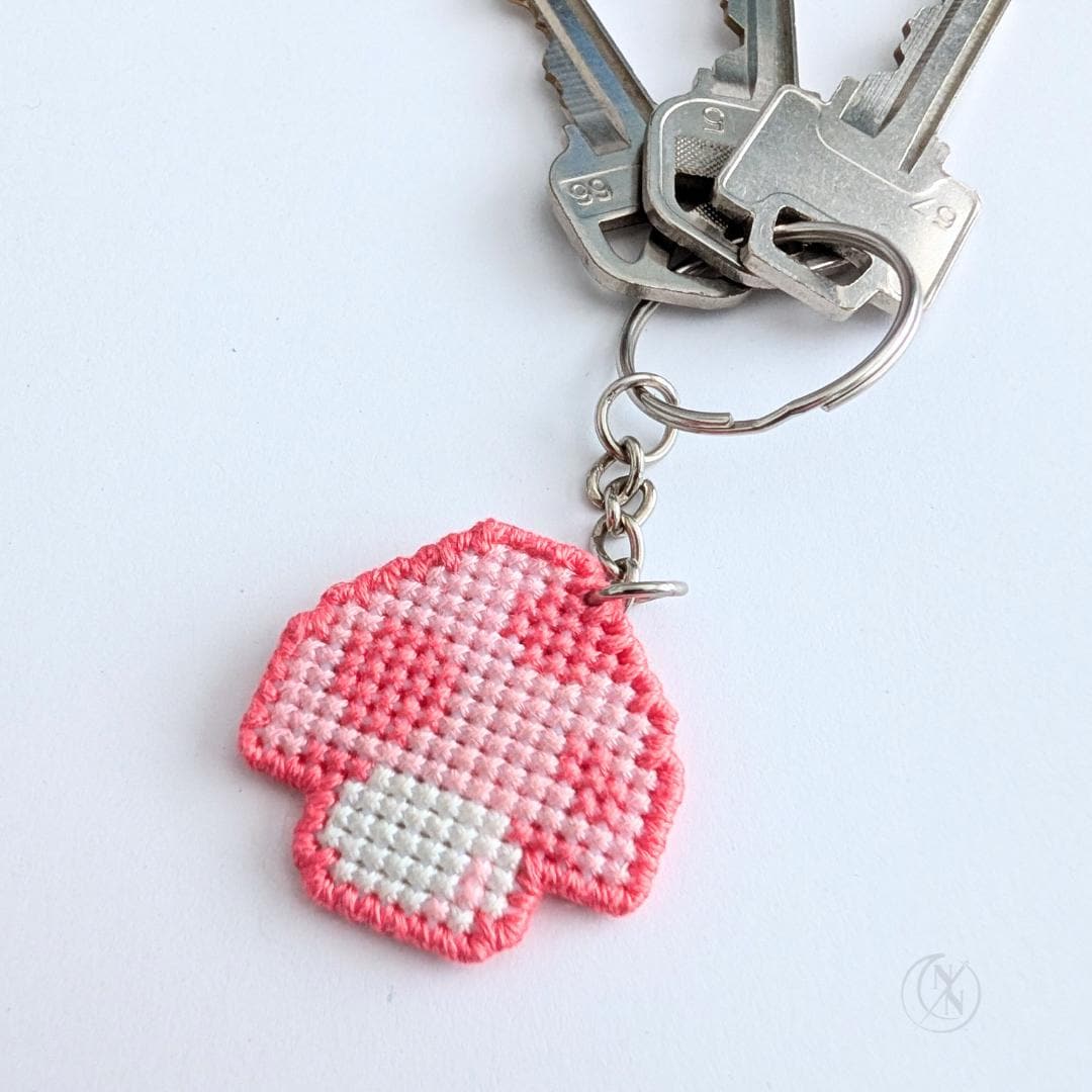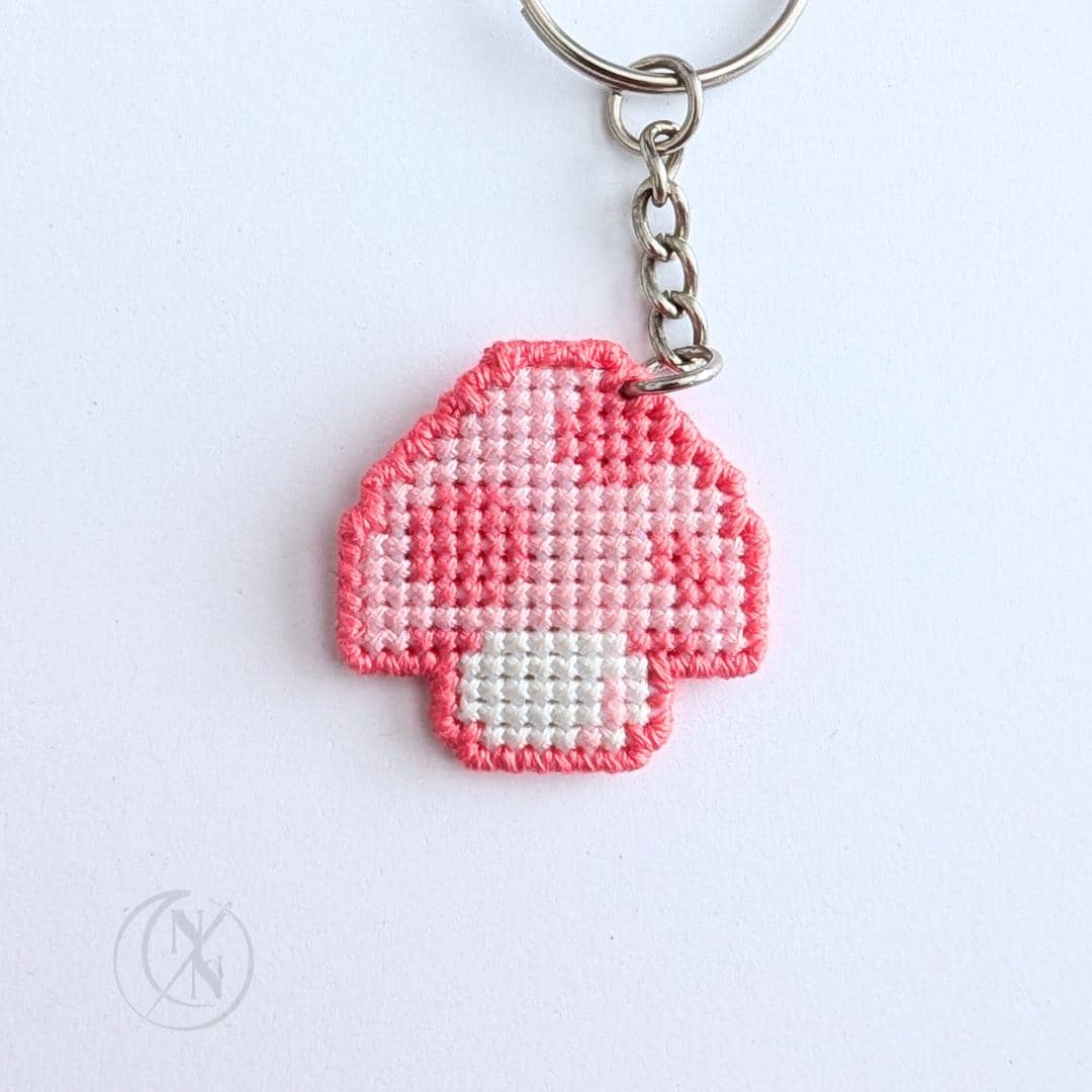 Handmade Cross Stitch Mushroom Keychain, Bag Charm