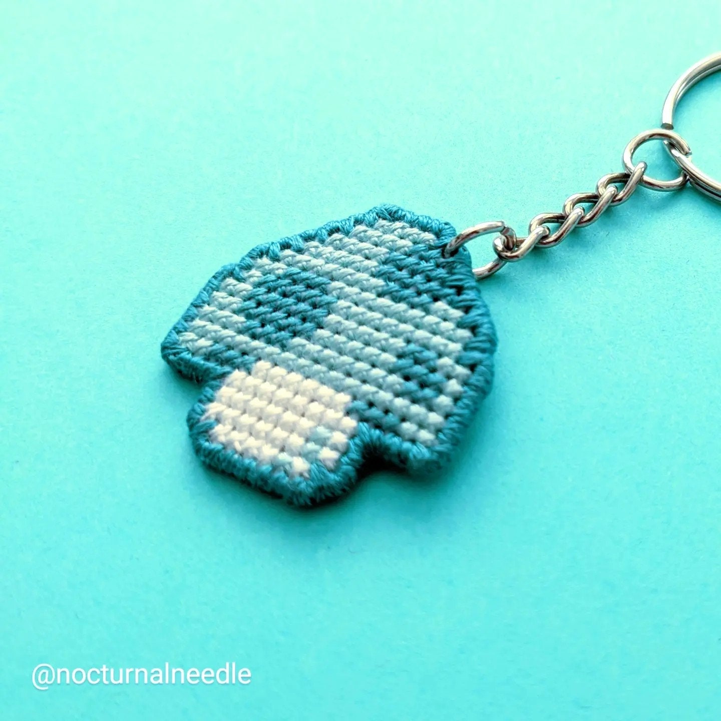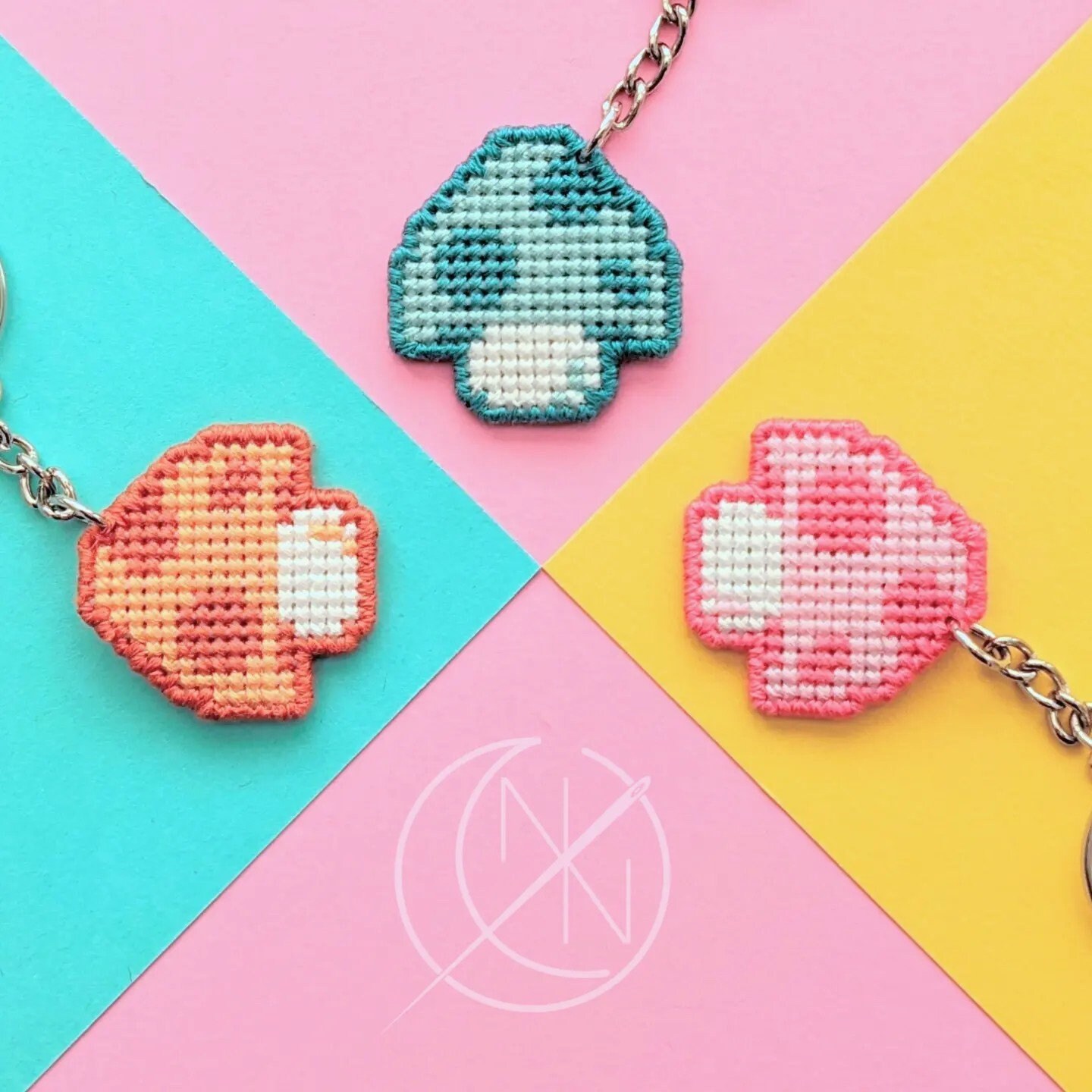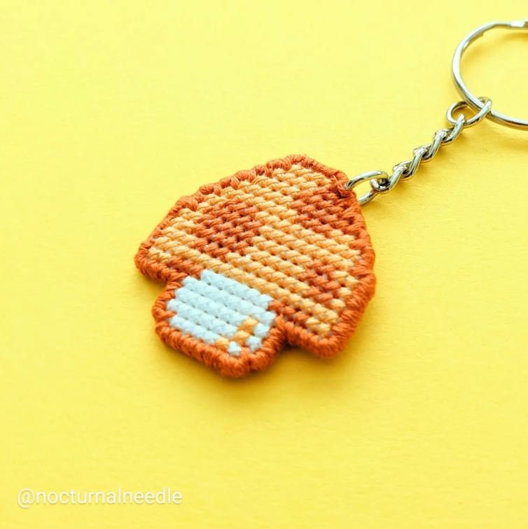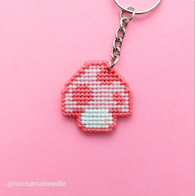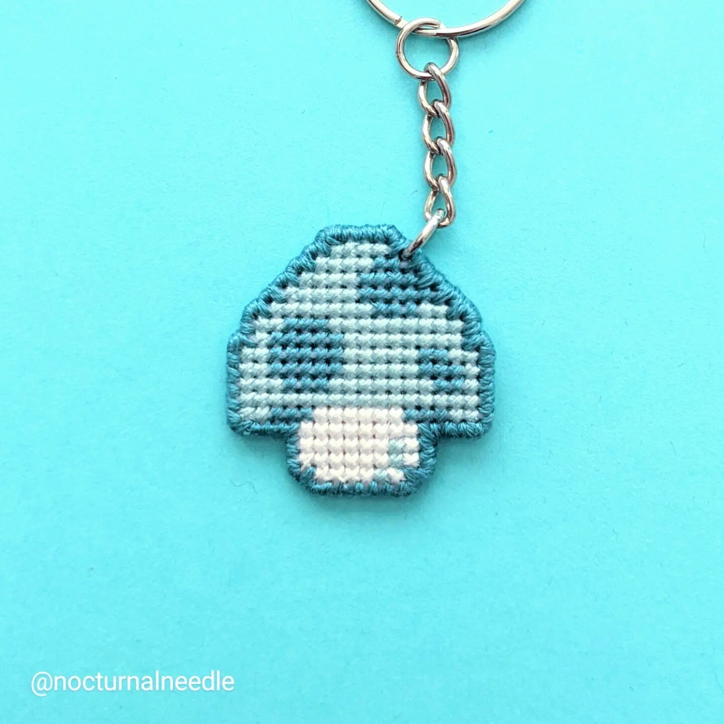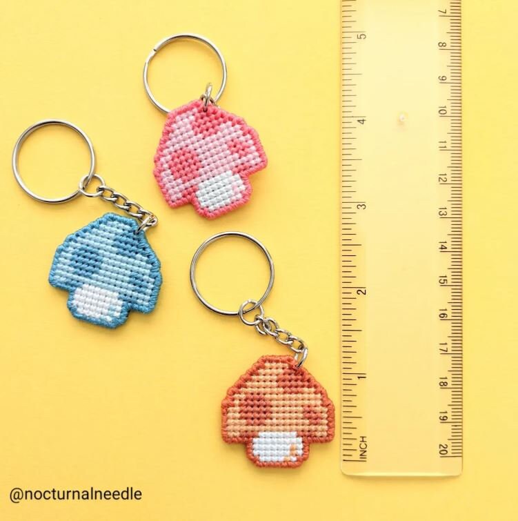 Handmade Cross Stitch Mushroom Keychain, Bag Charm