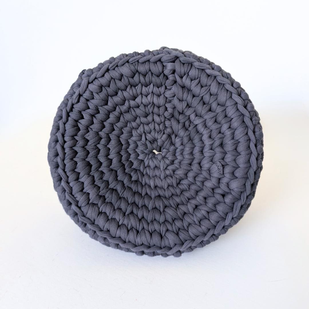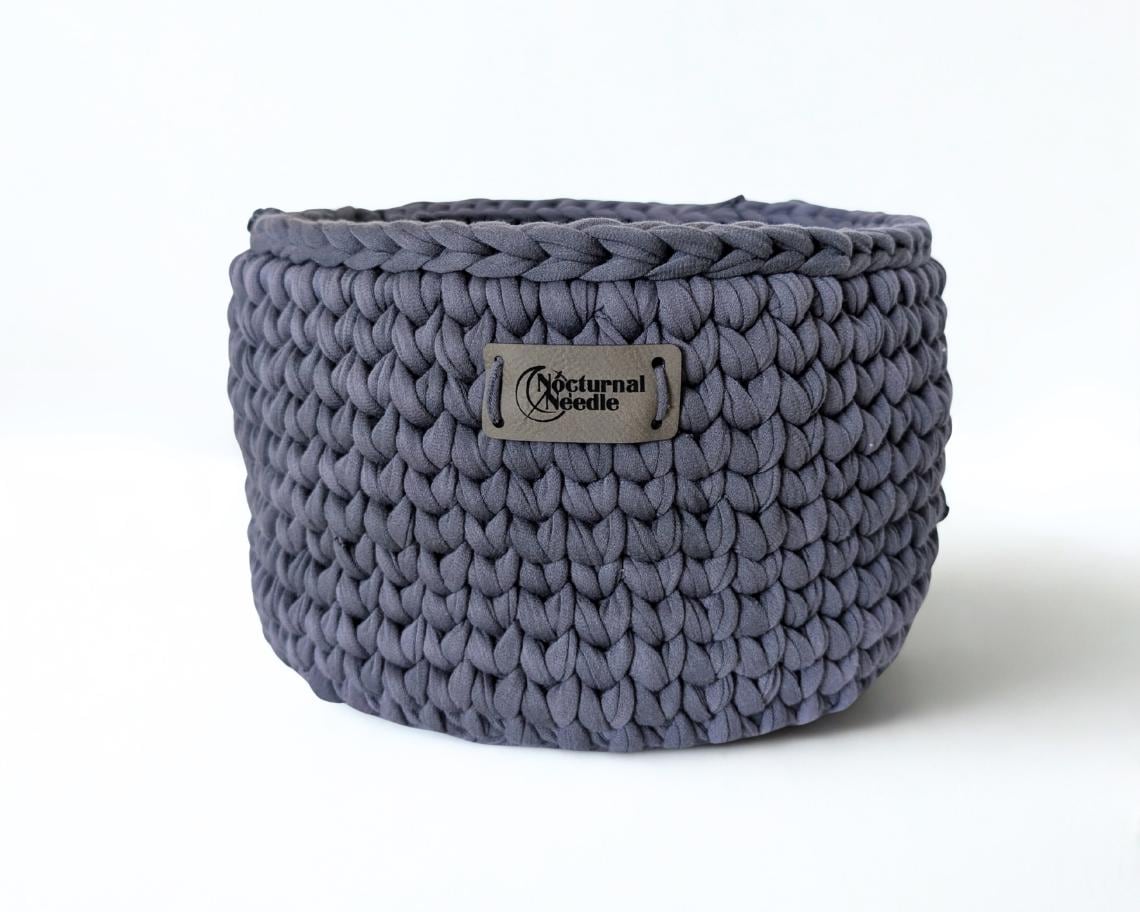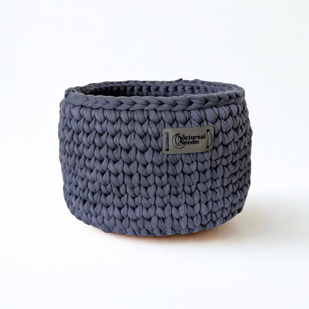 Add soft texture and modern simplicity to your space with this handmade dark grey crochet basket. Crafted from thick, durable 100% cotton handmade T-shirt yarn, this piece blends function and style, perfect for organizing your home while keeping things cozy and elevated.